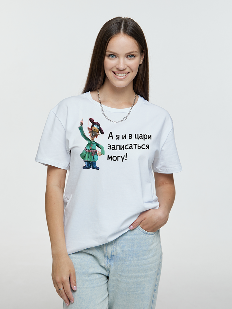 Футболки базовые с принтом «А я и в цари записаться могу» по мотивам мультфильма «И падал прошлогодний снег»