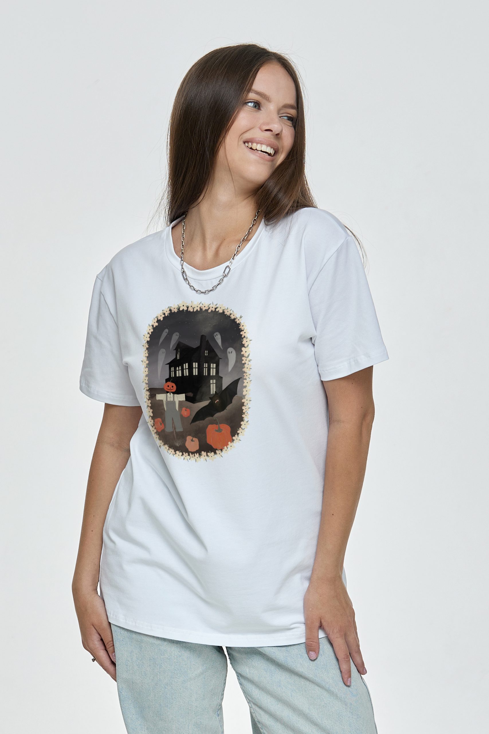 Футболка базовая Хэллоуин «Ghost house with pumpkin»