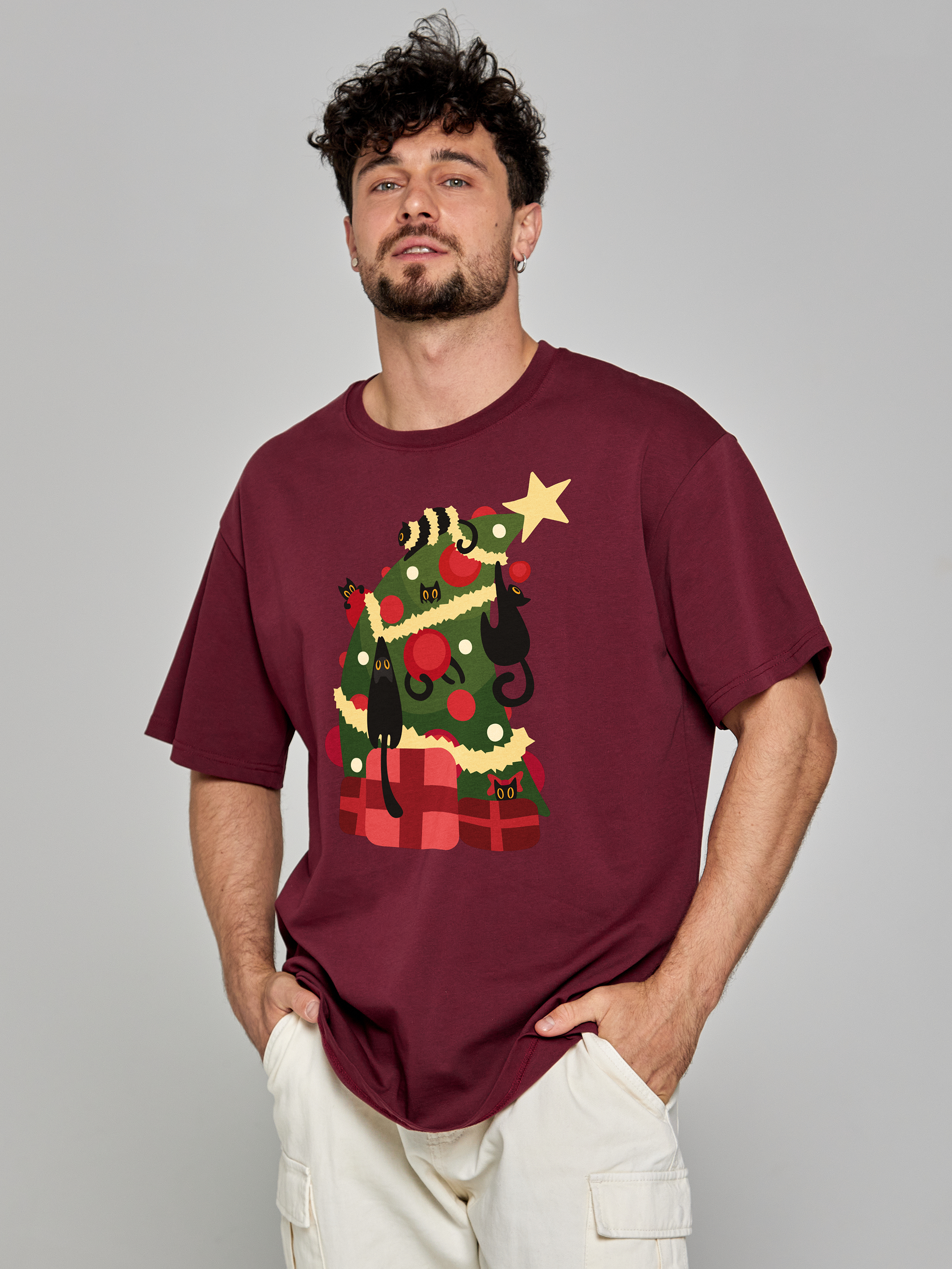 Футболки оверсайз с принтом «Коты на Ёлке»