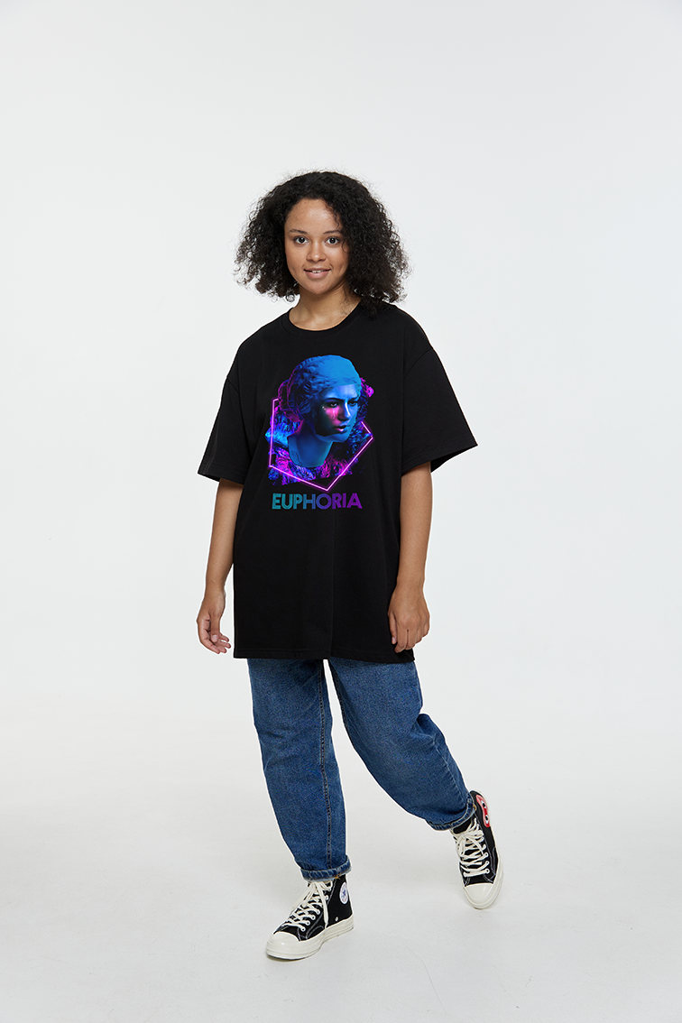 Футболка оверсайз из кулирной глади. Фасон унисекс. Состав: 100% хлопок. Плотность: 230 г/м2. Свободный актуальный крой, заниженная линия плеч. Круглый воротник на резинке, шов ворота закрыт киперной лентой. Необходимая вещь в гардеробе для повседневного образа.
