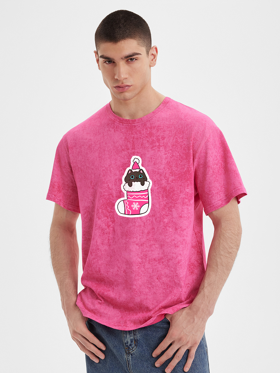 Футболки оверсайз вареная с принтом «Кот в носке»