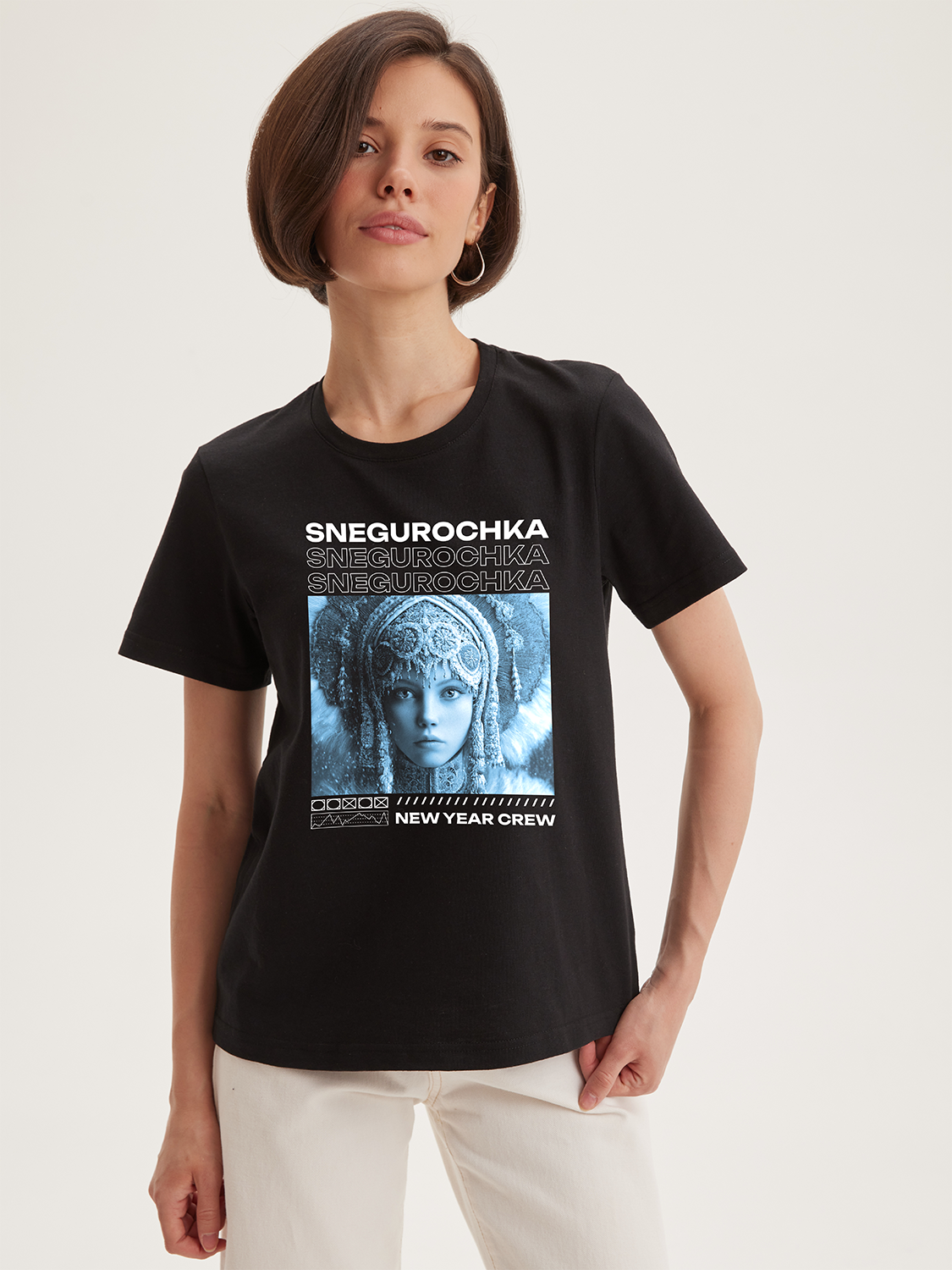 Футболка женская базовая из кулирной глади, 100% хлопок. Плотность 180г/м2. Прилегающий силуэт, короткий рукав и круглый воротник. Низ футболки и низ рукава обработаны швом в подгибку шириной в 2 см. Приталенный крой выгодно подчеркивает женскую фигуру.