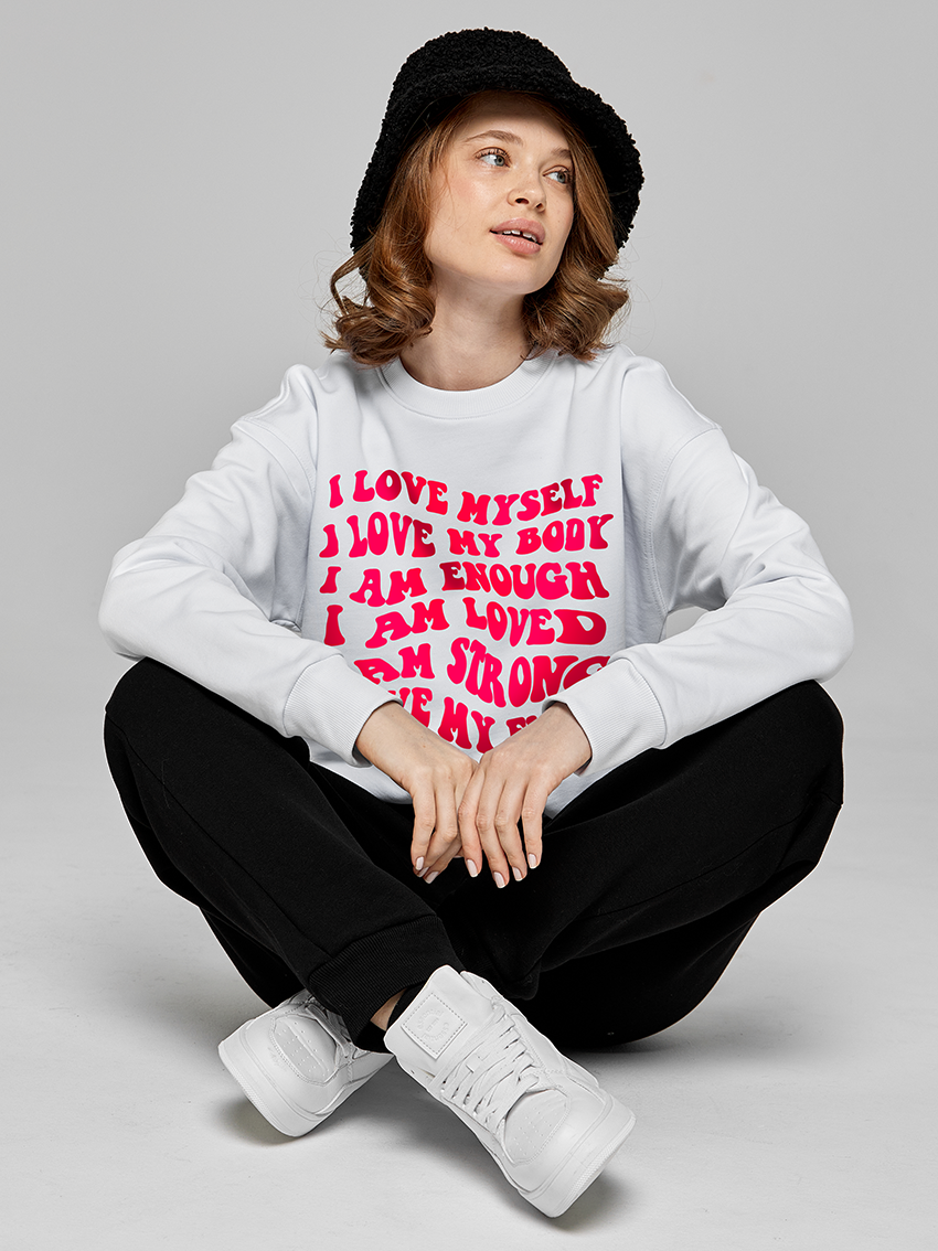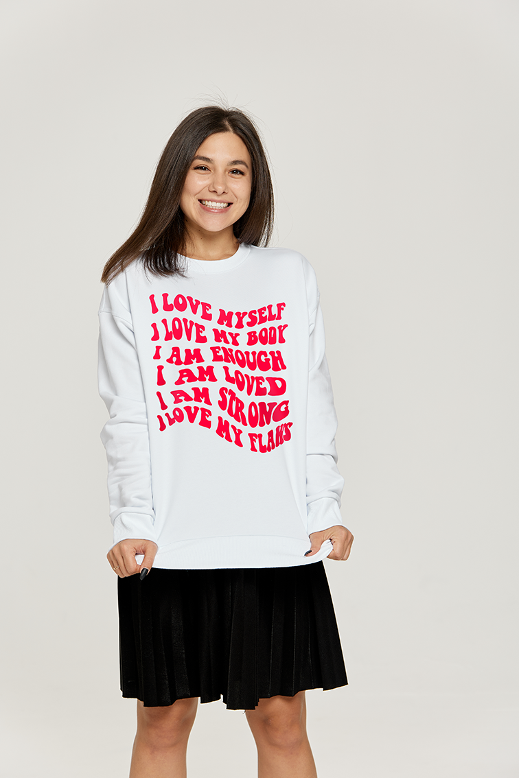 Свитшот оверсайз из качественного турецкого полотна (футер трёхнитка) с мягким велюром внутри: 100% хлопок. Плотность 350 г/м2. Объемный силуэт, слегка расширенный плечевой пояс, зауженный к низу рукав. Конструкция со спущенным плечевым швом обеспечивает удобную посадку и не сковывает движений. Крой свитшота – женский.
