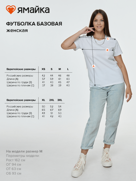 Футболка женская базовая из кулирной глади, 100% хлопок. Плотность 180г/м2. Прилегающий силуэт, короткий рукав и круглый воротник. Низ футболки и низ рукава обработаны швом в подгибку шириной в 2 см. Приталенный крой выгодно подчеркивает женскую фигуру.