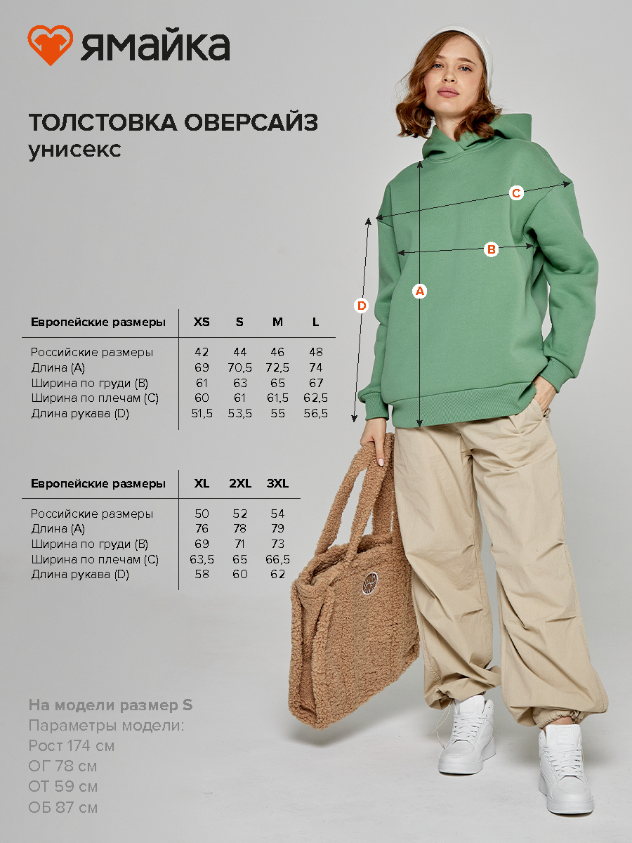 Толстовка оверсайз с боковыми карманами из футера трёхнитки с начёсом: 350 г/м2, 80% хлопок и 20% полиэстер. Удлиненный фасон, свободный актуальный крой. Спущенная линия плеча, втачной рукав, объёмный капюшон. Края капюшона сшиты внахлест. Низ толстовки и манжеты рукавов обработаны эластичной резинкой. Худи унисекс, фасон подойдет мужчинам и женщинам.