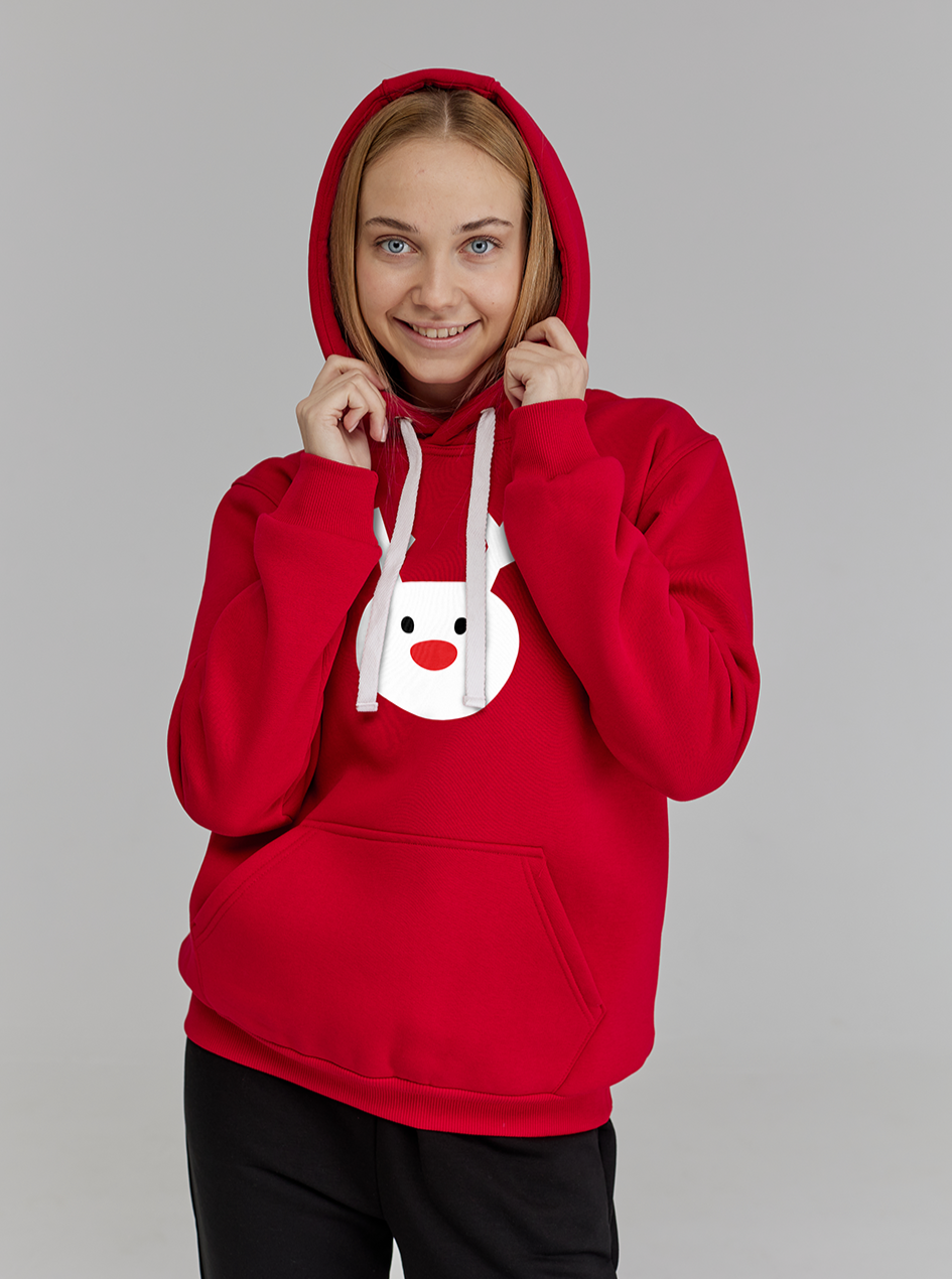 Создайте свой новогодний образ с нашей толстовкой, украшенной зимним принтом «Олень». Красная основа толстовки и белый олень воплощают в себе нежность и тепло зимних вечеров, волшебная атмосфера которых непременно передадутся и вам!